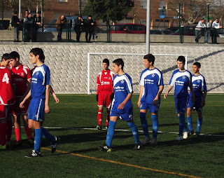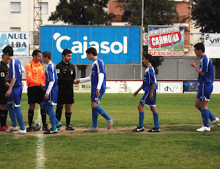 En la primera mitad se adelantó el infantil Samuel, a pase del también infantil, Miguel Angel, y es que el Cadete "B" tuvo que reforzarse hasta con 4 jugadores de inferior categoría debido a que el Cadete "A" había tirado de varios jugadores de este equipo. Antes del descanso empataban los chiclaneros en un desafortunado balón que se le escapó de las manos a nuestro portero, Adri. En la segunda mitad no llegamos mucho a puerta y Adri nos salvó de ponernos por debajo en varias ocasiones hasta que llegó el 1-2 cuando más apretaba La Salle. El equipo siguió igual, ordenado y con peligrosas contras, pero cuando merecíamos empatar llegó el penalty que supuso el definitivo 1-3. Así es el fútbol y hay que seguir dándolo todo en cada partido porque este equipo está demostrando lo que es luchar y disfrutar a pesar del resultado. Adjuntamos algunas imágenes del encuentro que en el facebook de La Salle se pueden ampliar con un gran reportaje de Angel Baro.